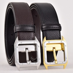 Men Youth Fashion Cow Hide Alloy Square Buckle Pin Perforated Cross-Border Versatile Korean Style Casual High-End Leather Belts